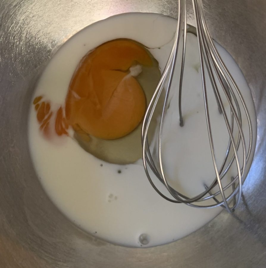 ①ボウルに卵と牛乳を混ぜてから、本品1袋を入れてダマがなくなる程度混ぜ合わせる。