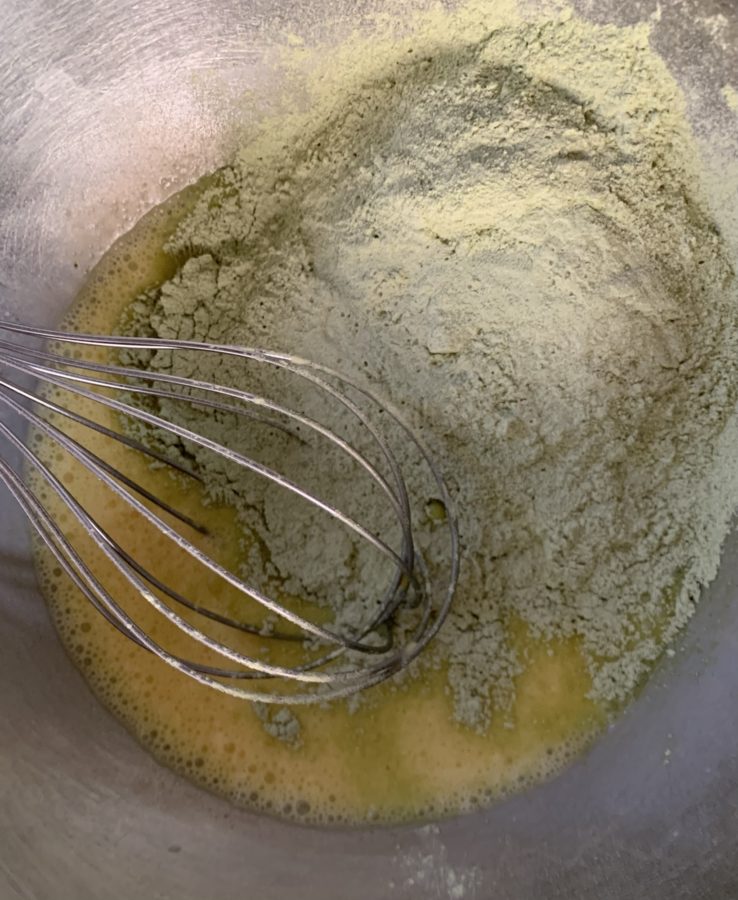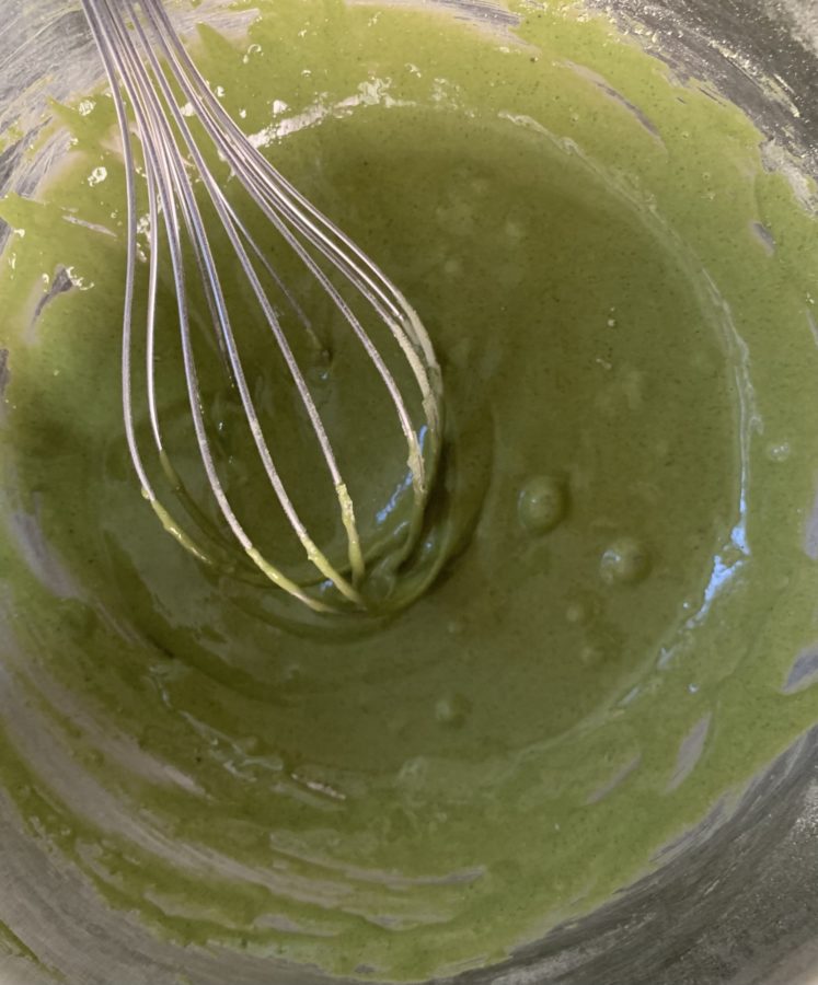 (混ぜたあと生地を3分ほど寝かせると粉が水分を吸ってしっとりします)