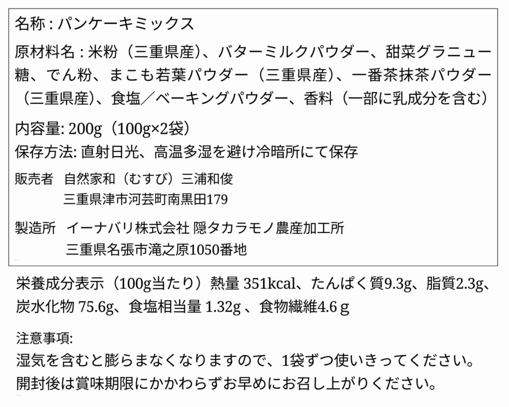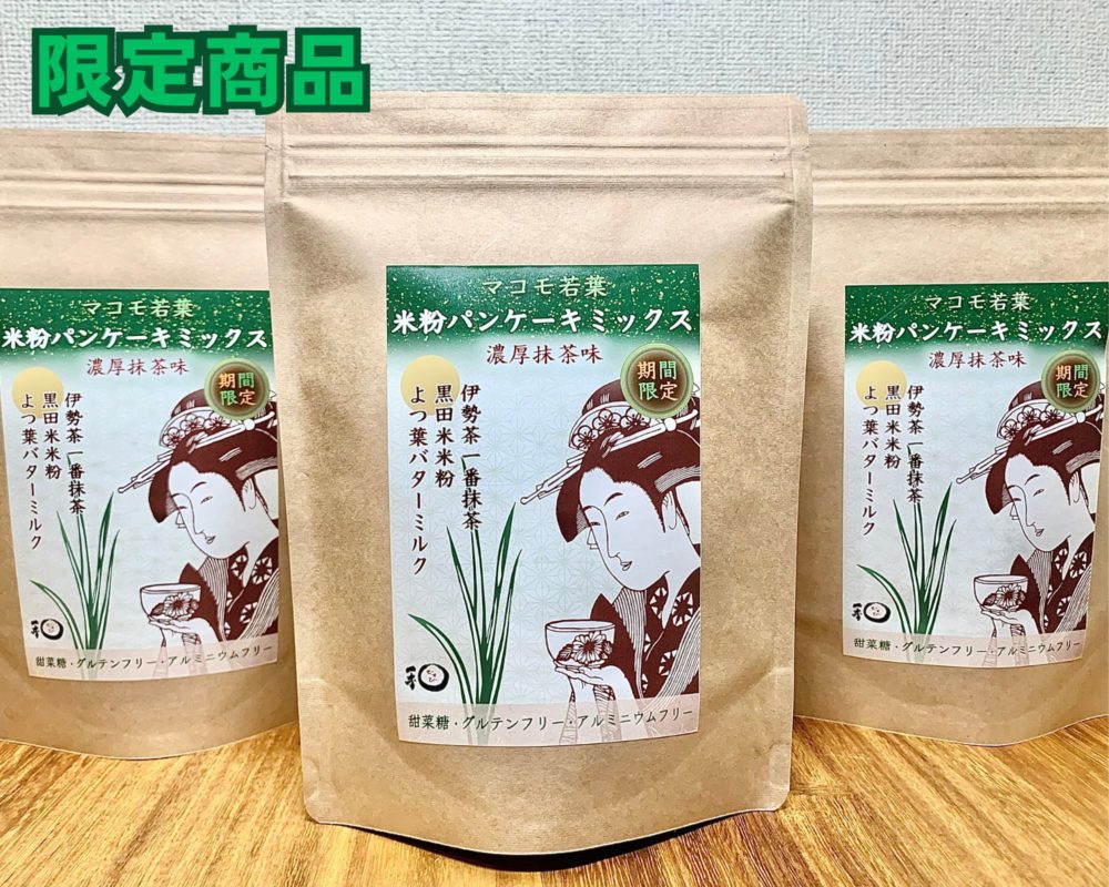 そんな思いを贅沢な素材でカタチにしてもらってできたのが『マコモ若葉 米粉パンケーキミックス』です。