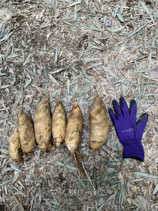 出始めのタケノコは手袋くらい