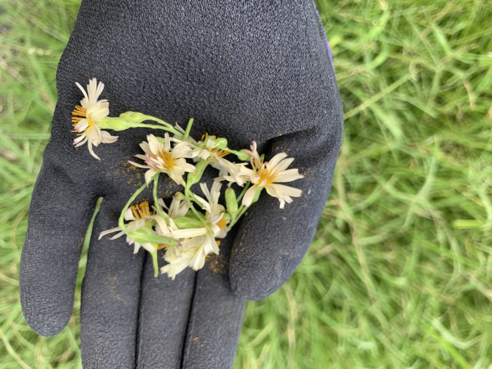 女の子がお礼にと、お花を摘んで