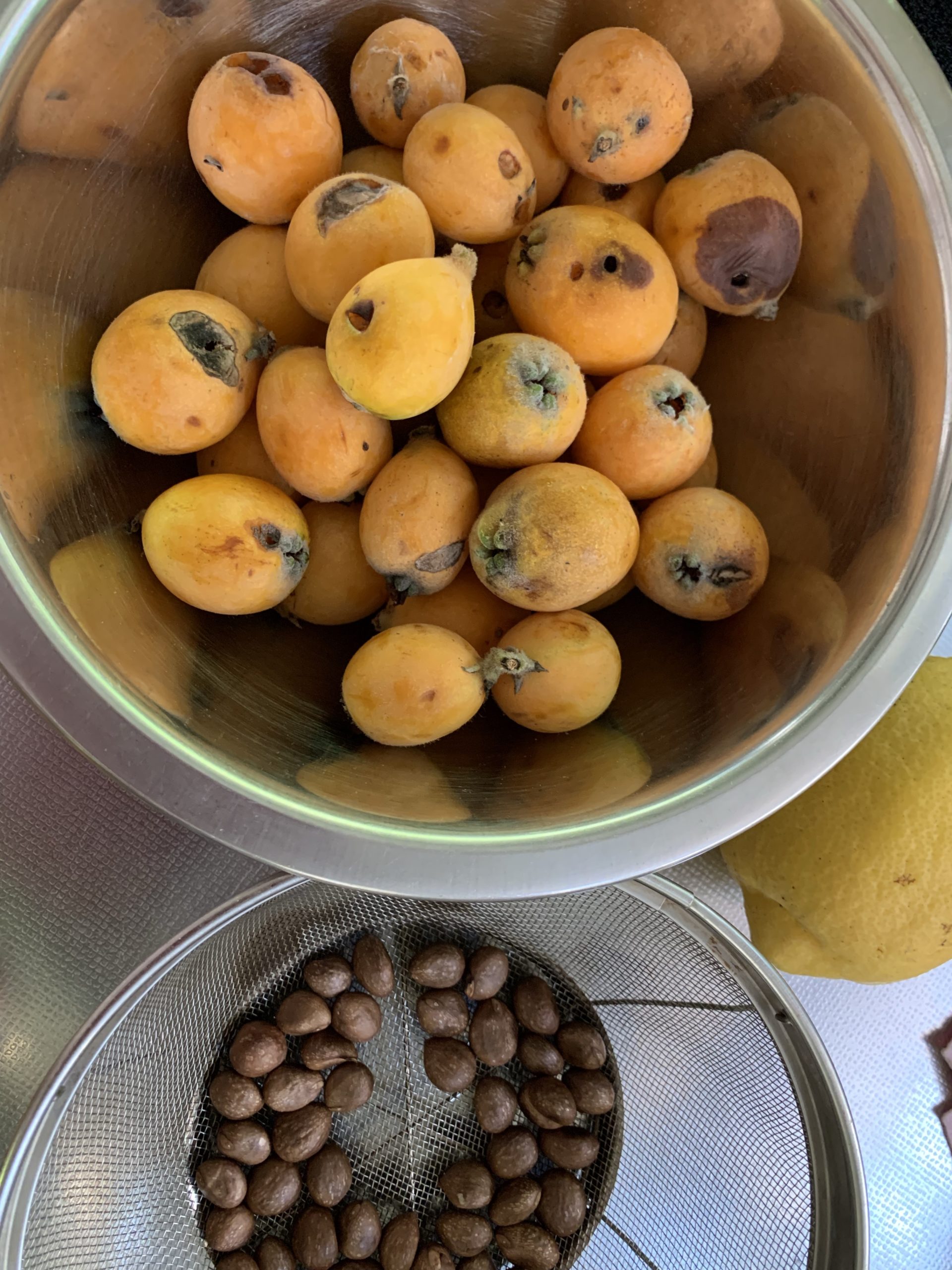 出荷できないビワは種取り用に。