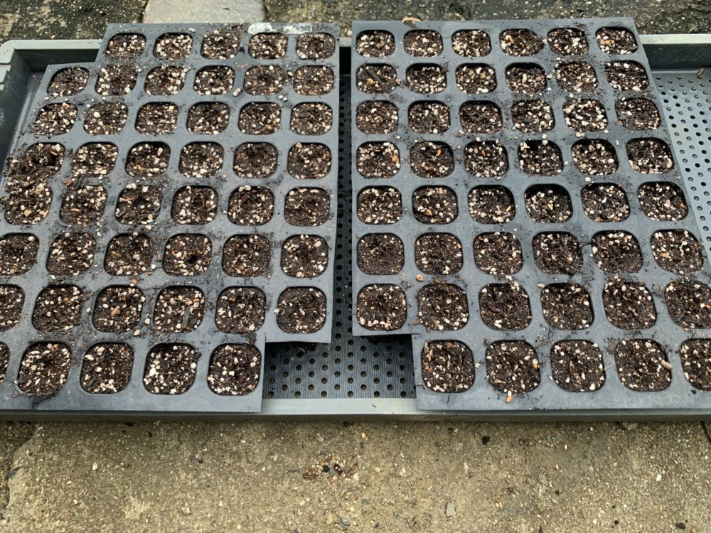 今回は葉物野菜もセルトレイに種まきしてみました。